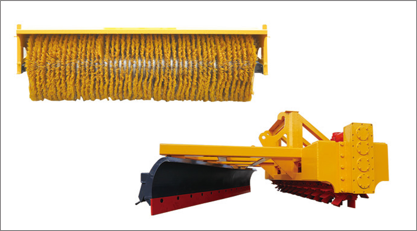 后置清雪刷采用高耐磨尼龙、钢丝清雪刷,坚固耐用。主机采用潍柴道依茨(6缸)发动机,最先进液力分体无极变速箱全自动电控一杆操作,低速挡行驶15km/h,动力强劲、清扫干净。有效地去除路面积冰、积雪。